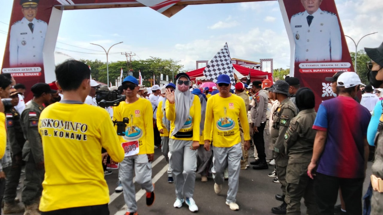 ​”Inilah bukti bahwa Konawe tetap bersemangat, meski diterpa panas terik dan hujan sekalipun,” ujar Bupati Yusran Akbar, menggambarkan keteguhan hati warga Konawe.