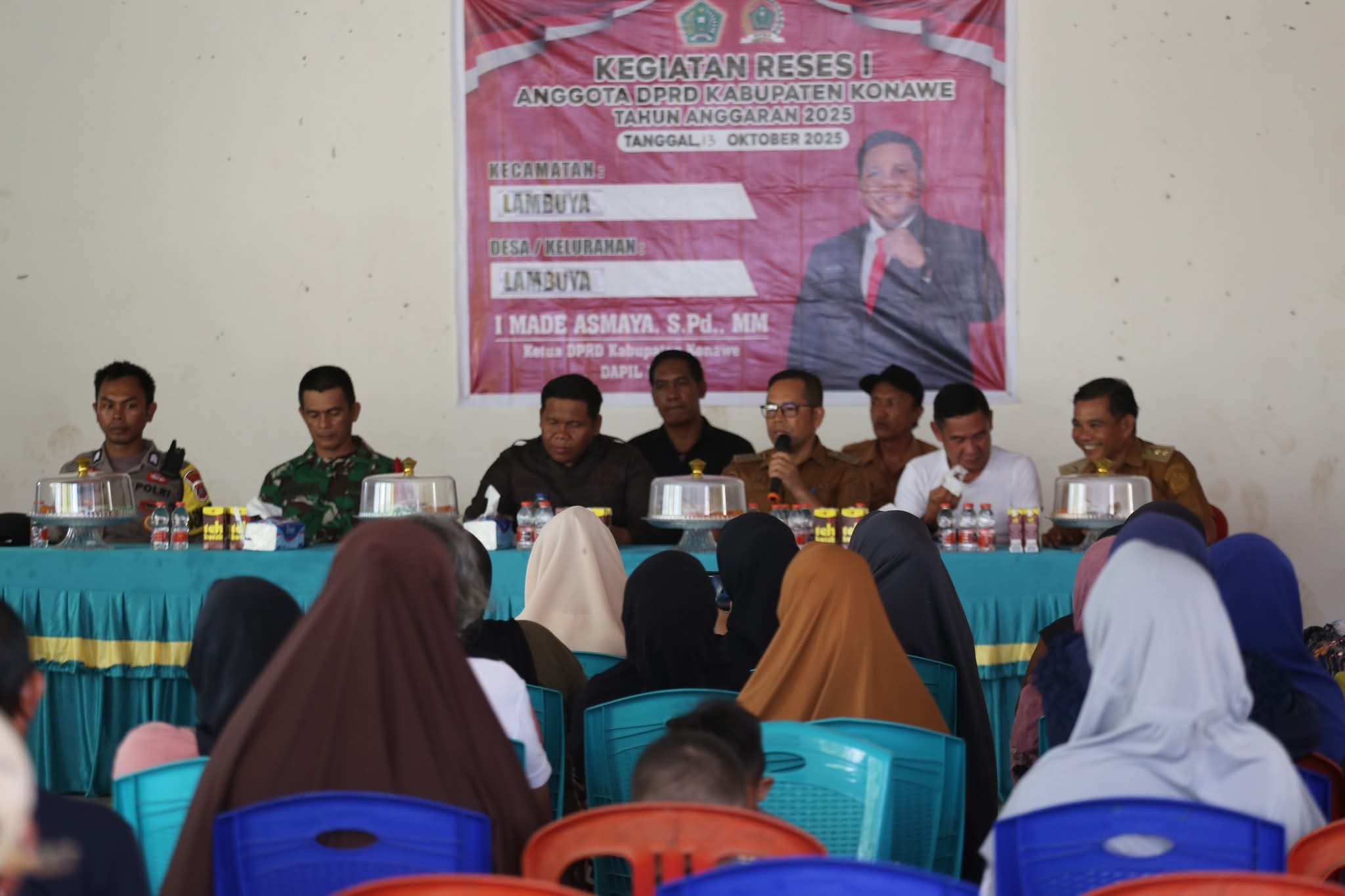 SULTRAONE.com.Konawe – Ketua Dewan Perwakilan Rakyat Daerah (DPRD) Kabupaten Konawe, I Made Asmaya, S.Pd., MM., memulai kegiatan reses masa persidangan I tahun 2025 dengan menyerap langsung aspirasi masyarakat di Kelurahan Lambuya, Kecamatan Lambuya, Selasa (14/10/2025).