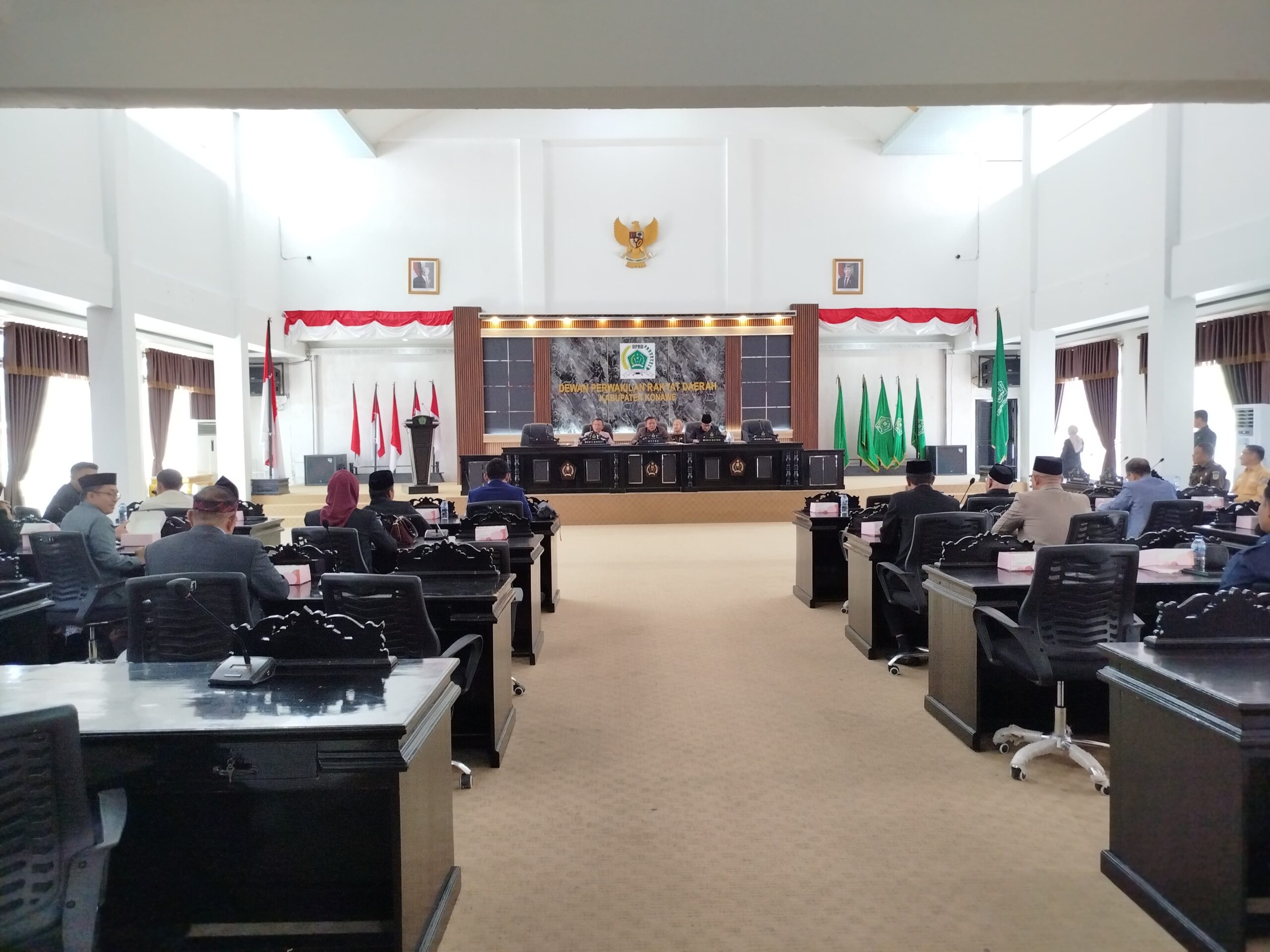 Bupati melalui sambutannya menyampaikan bahwa disetujuinya dua Raperda strategis ini merupakan bukti nyata komitmen bersama dalam memperkuat landasan hukum pengelolaan pemerintahan daerah yang transparan, tertib, dan akuntabel.