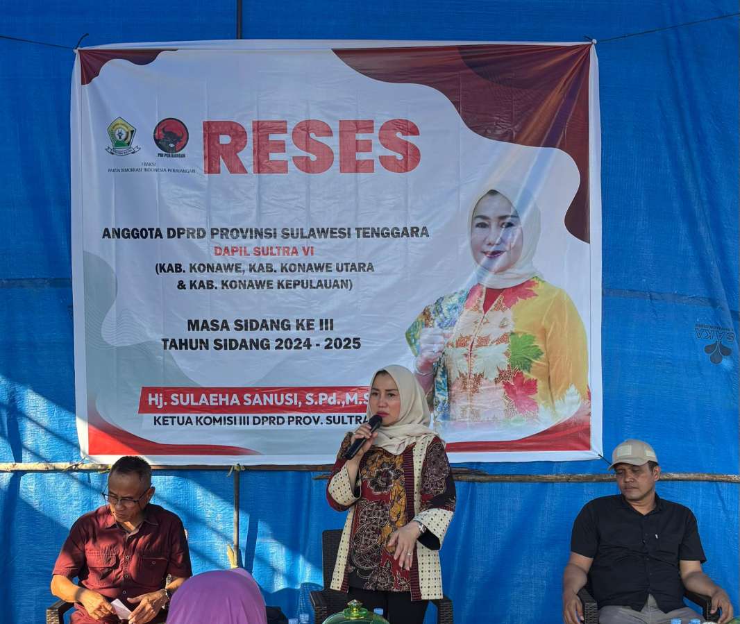 SULTRAONE.com.Konut – Anggota DPRD Provinsi Sulawesi Tenggara (Sultra), Hj. Sulaeha Sanusi, S.Pd., M.Si yang juga menjabat sebagai Ketua Komisi III, menggelar kegiatan reses masa sidang III tahun sidang 2024–2025 di Desa Puulemo,Kecamatan Lembo, Kabupaten Konawe Utara. Kegiatan ini menjadi ajang penting bagi masyarakat untuk menyampaikan langsung aspirasi serta permasalahan yang mereka hadapi kepada wakil rakyat.