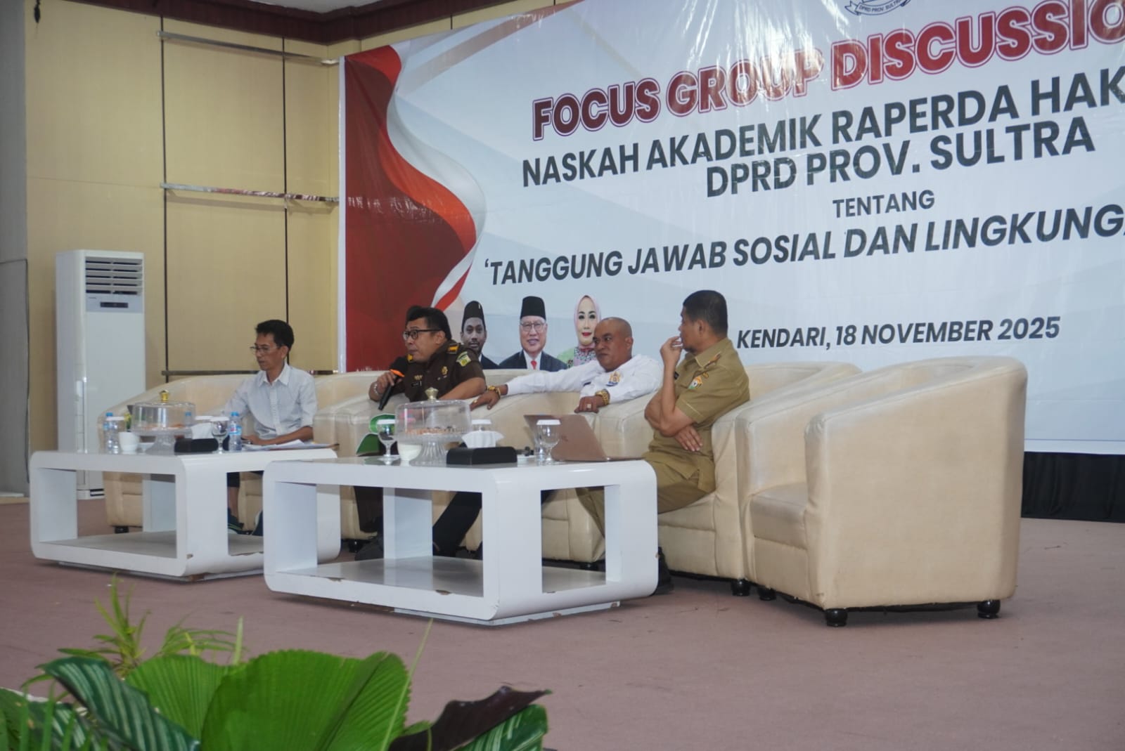 Dukungan tersebut disampaikan Wakil Ketua Bidang Hukum dan Hak Asasi Manusia (HAM) Kadin Sultra, Supriadi, yang hadir sebagai pembicara dalam Focus Group Discussion (FGD) Raperda TJSLP di salah satu hotel di Kendari, Selasa (18/11/2025).