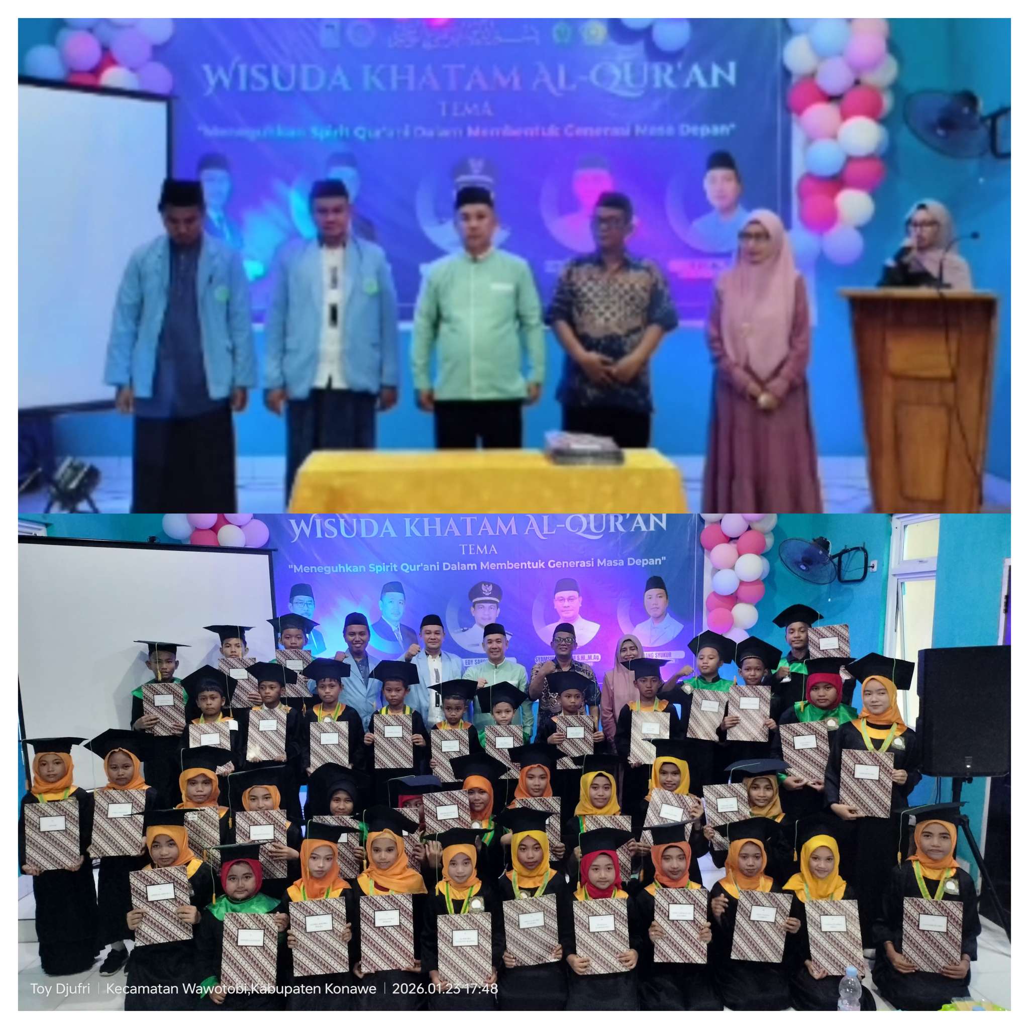 SULTRAONE.com.KONAWE – Dewan Pengurus Kecamatan Badan Komunikasi Pemuda Remaja Masjid Indonesia (DPK BKPRMI) Kecamatan Wawotobi sukses menggelar Wisuda Akbar Khatam Al-Qur’an Se-Kecamatan Wawotobi, Jumat, 23 Januari 2026.
