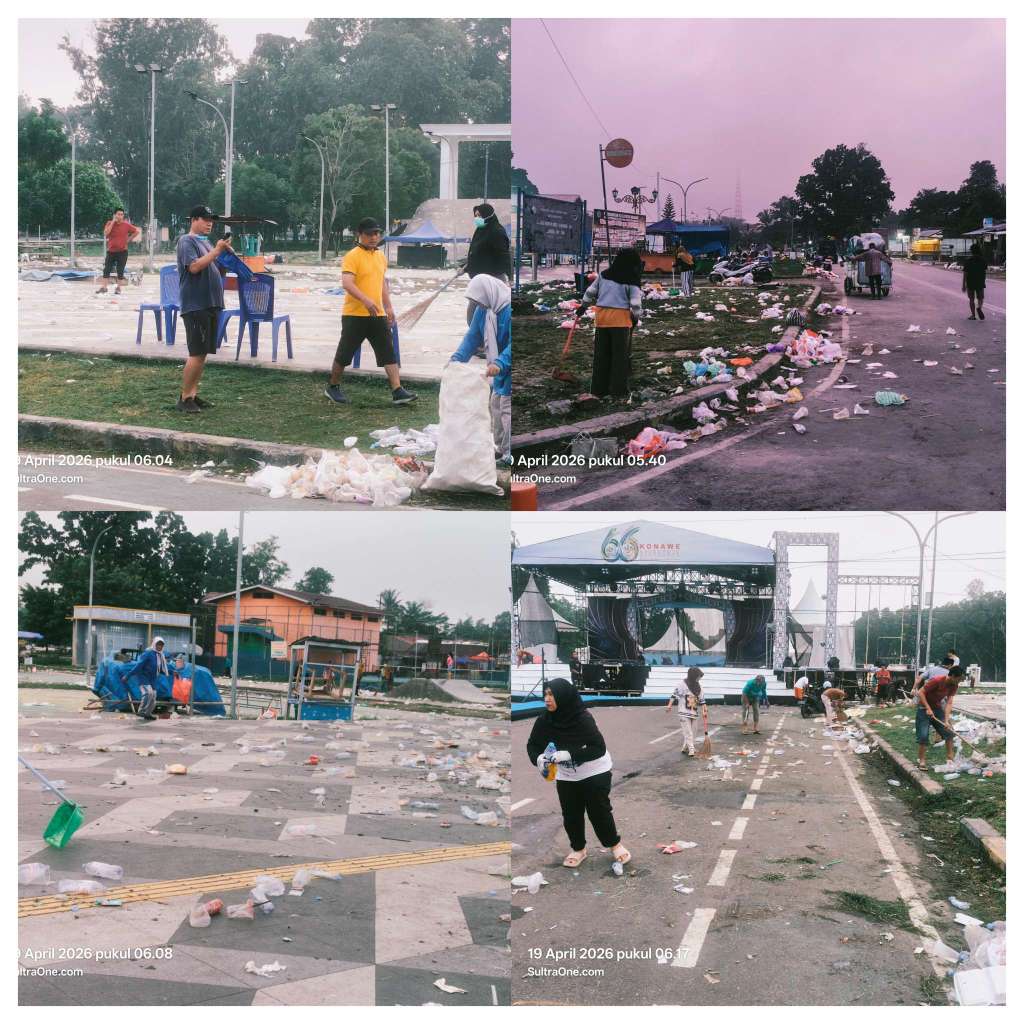 Tanpa mengenal hari libur, ratusan personel P3K Dinas Lingkungan Hidup (DLH) Kabupaten Konawe langsung diterjunkan untuk melakukan pembersihan total di area panggung utama dan seluruh kawasan sekitar ICP. Minggu ( 19/04/2026)